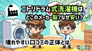 ニトリのドラム式洗濯機はなぜ安い?「壊れやすい」「どこのメーカー?」といった不安を徹底解説。口コミでの評判から、衝撃の5年保証、ヒーター式の乾燥実力まで、購入前に知るべき全情報を公開します。