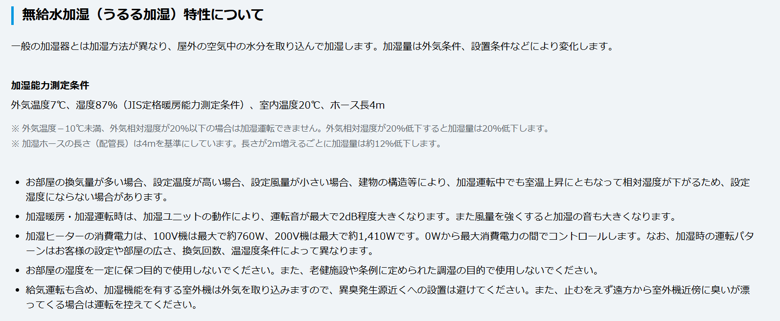 カタログに記載されている加湿量は、屋外の湿度が87%など、非常に理想的な条件下で測定されたものです。