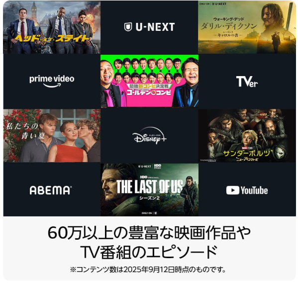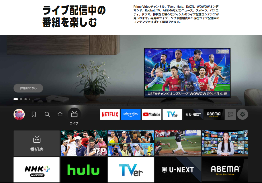 また、サービスのショートカットボタンも時代に合わせて更新されており、「TVer」や「U-NEXT」など、利用頻度の高いアプリが配置されている点も嬉しいポイントです。