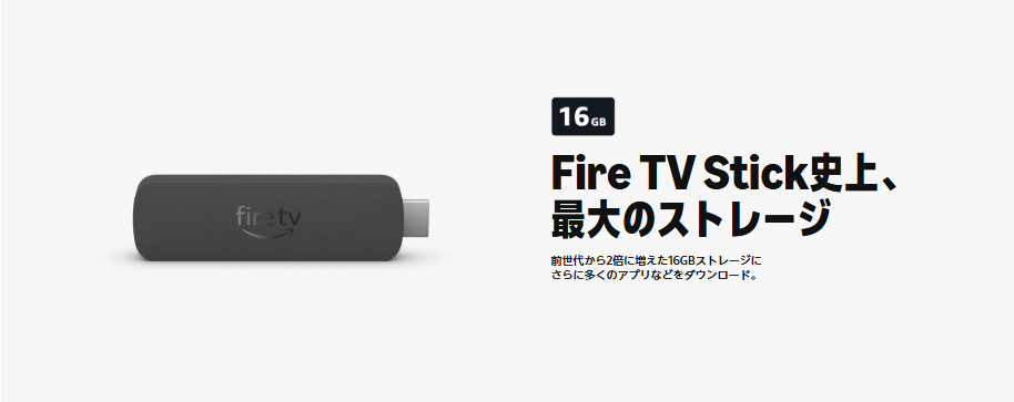 さらに、アプリの互換性で安心できるFire OS、複数のアプリを余裕で保存できる16GBストレージ、かゆいところに手が届く多機能リモコン。