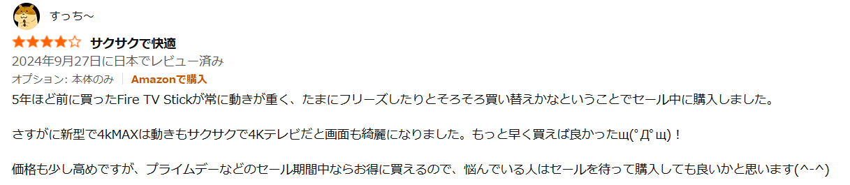 このわずかな価格差で、これから数年間の「もっさりしたストレス」から解放され、「サクサクした快適さ」が手に入るのであれば、4K Maxへの投資は非常にコストパフォーマンスが高いと言えるでしょう。