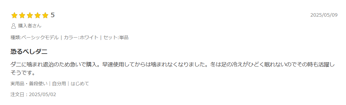 - 「ダニ対策に効果あり」