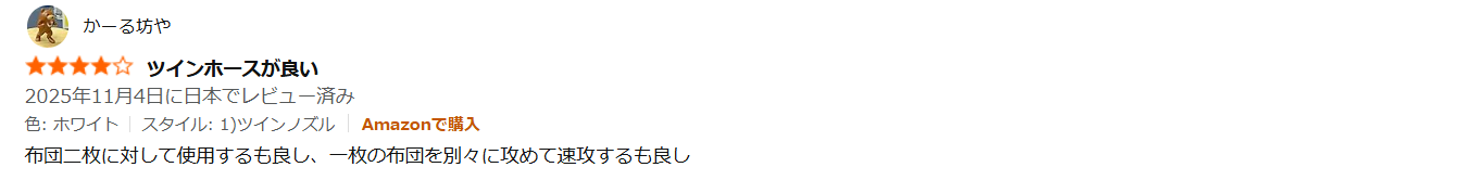 シングルを購入した方の口コミで気になったのは、「ダブル(ツイン)ノズルにすればよかった!」という声が結構あります。複数枚の布団がある方は、ツインノズルも候補に入れておきましょう!