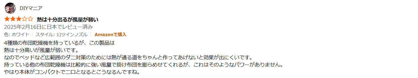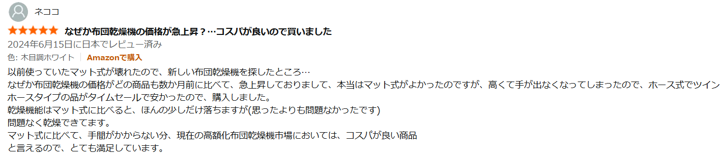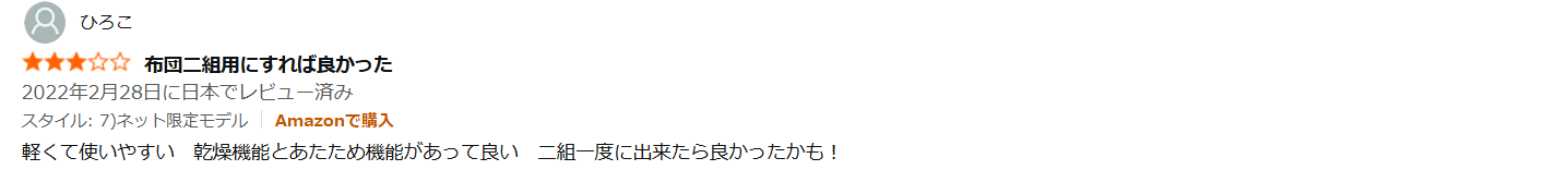 - 「高級感はないが、布団を乾かすという目的は達成できるので問題ない」