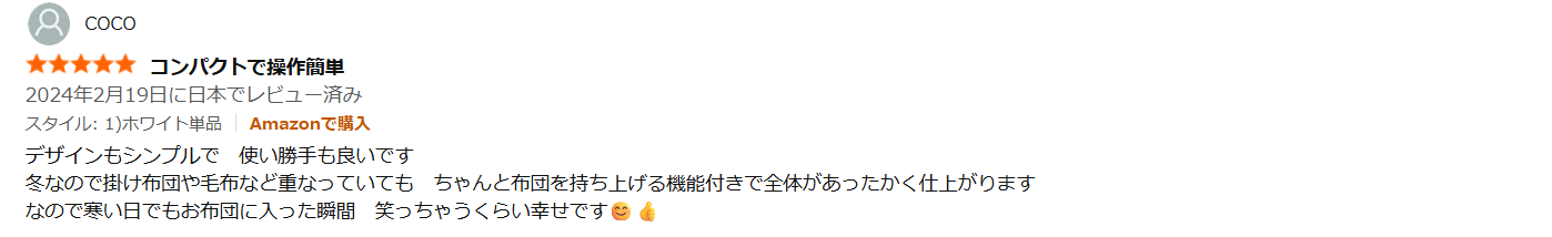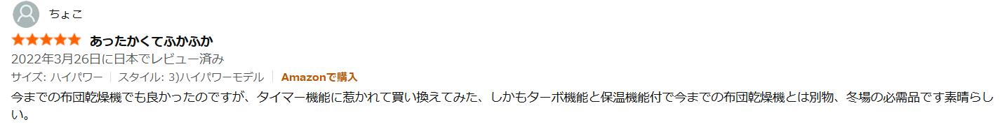 ユーザーは口を揃えて、わずか5分で布団が温かく「ふかふか」になるといいます。