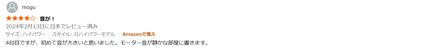- 「それなりに音はする」という意見がありますが、古いモデルと比較して「静かなほう」という声もあります。