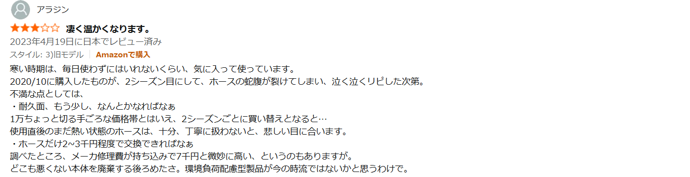 多くの人が「収納時に場所を取る」「ホースがやや固い」といったデザイン上の欠点を正直に指摘しているのです。