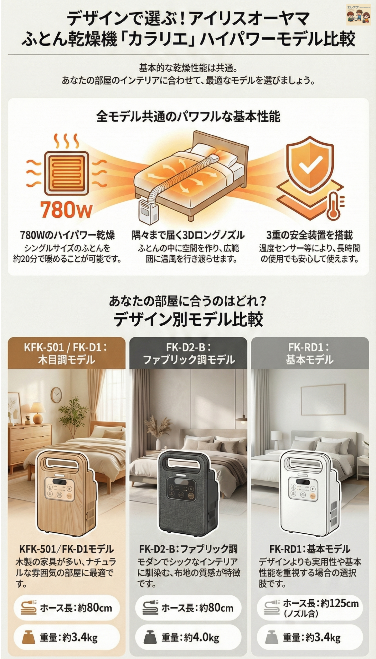 - 【比較】アイリスオーヤマ『カラリエ』布団乾燥機のデザインモデル