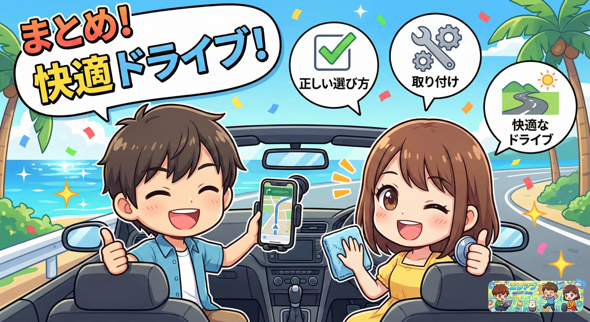 今回は、車用スマホホルダーの種類や選び方、そして絶対に失敗しない取り付けのコツについて解説しました。