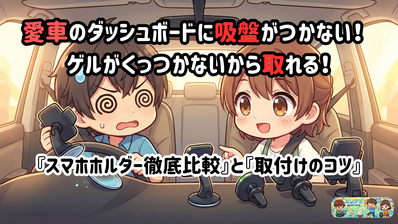 『スマホホルダー徹底比較』愛車のダッシュボードに吸盤がつかない!ゲルがくっつかないから取れる!