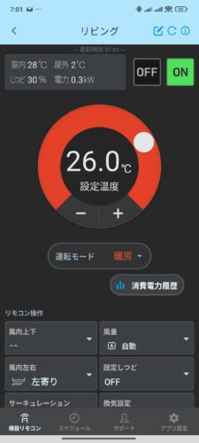 👇リビングエアコン ダイキン公式アプリで消費電力を把握!