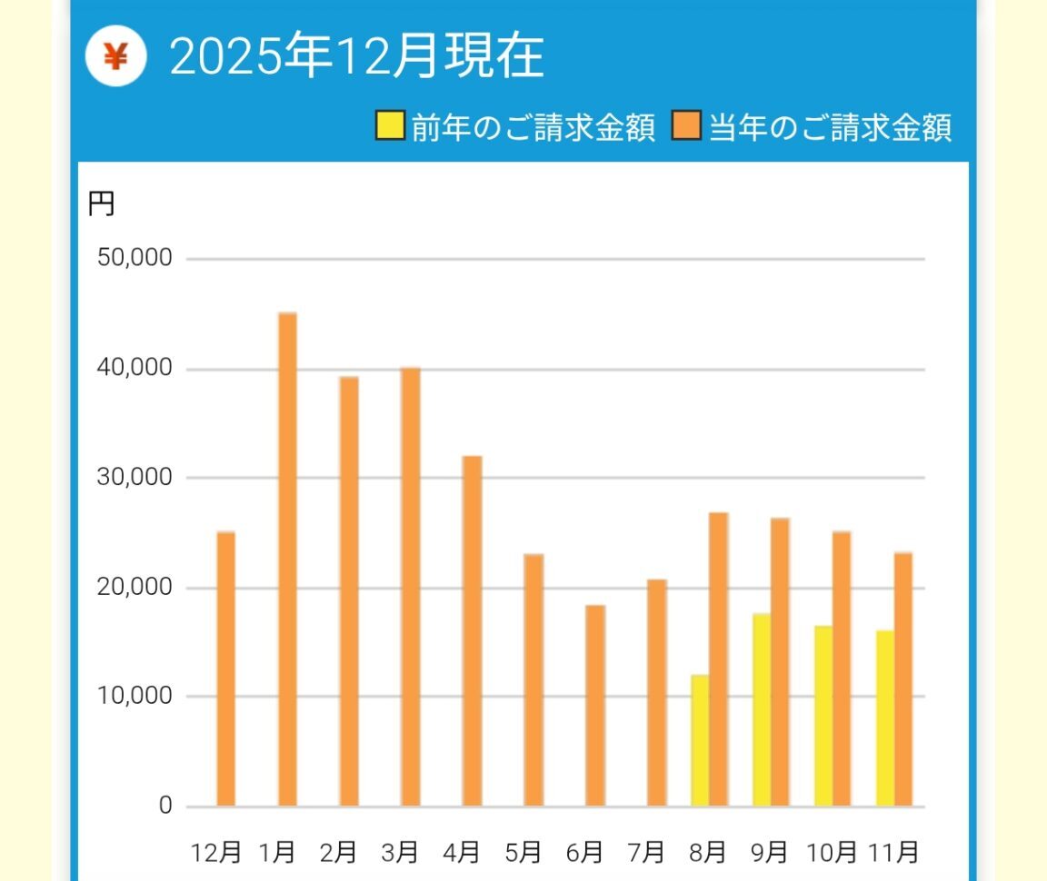 今回の2025年12月は何も我慢することなく、朝から超快適に暮らせる空間で4万円は切るでしょう。