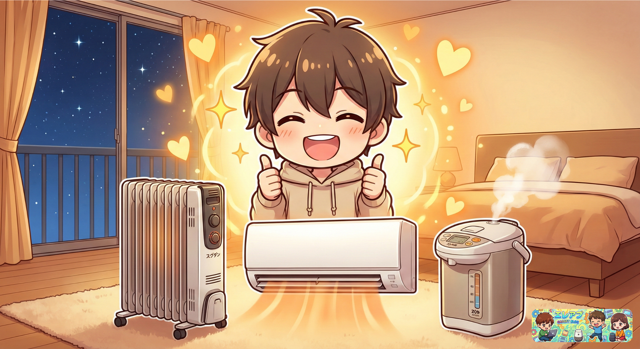 快適で健康的な朝を迎えるために、夜に寝室の暖房でエアコン以外におすすめで乾燥しない「スグダン+エアコン+象印スチーム加湿器」は最高です!( ˘ω˘)スヤァ