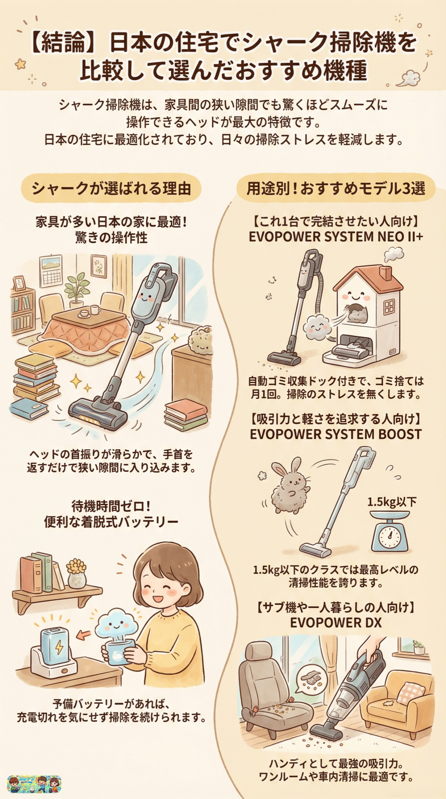 シャーク掃除機は、単なる高機能な道具ではなく、日本の「掃除の定義」を変える存在です。