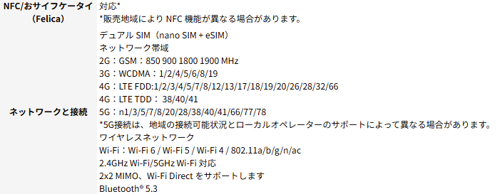 - SIM構成: デュアルSIM(nanoSIM + eSIM)構成をサポートしています。