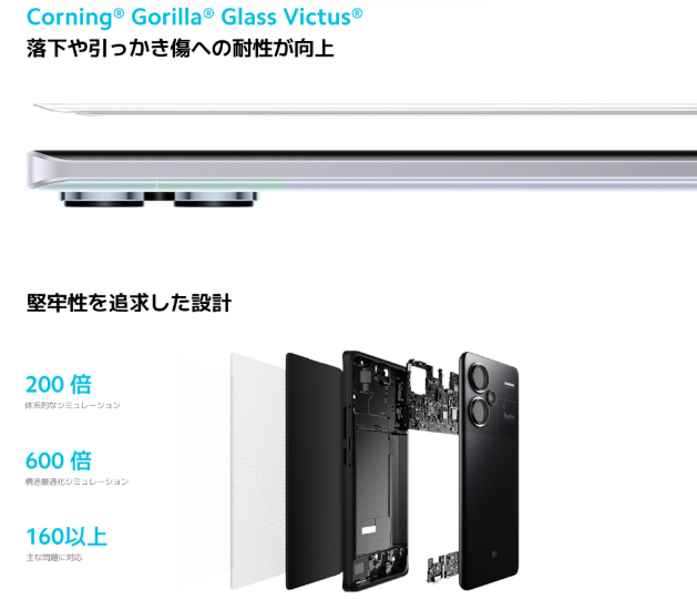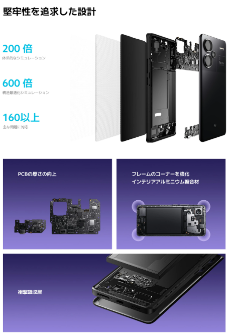 強化されたフレーム、厚みを増したプリント基板(PCB)、衝撃吸収層の採用など、堅牢性への深い技術的投資がなされています。