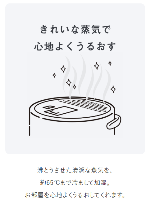 蒸気の清潔さが安心できる!加湿中も部屋が快適です!